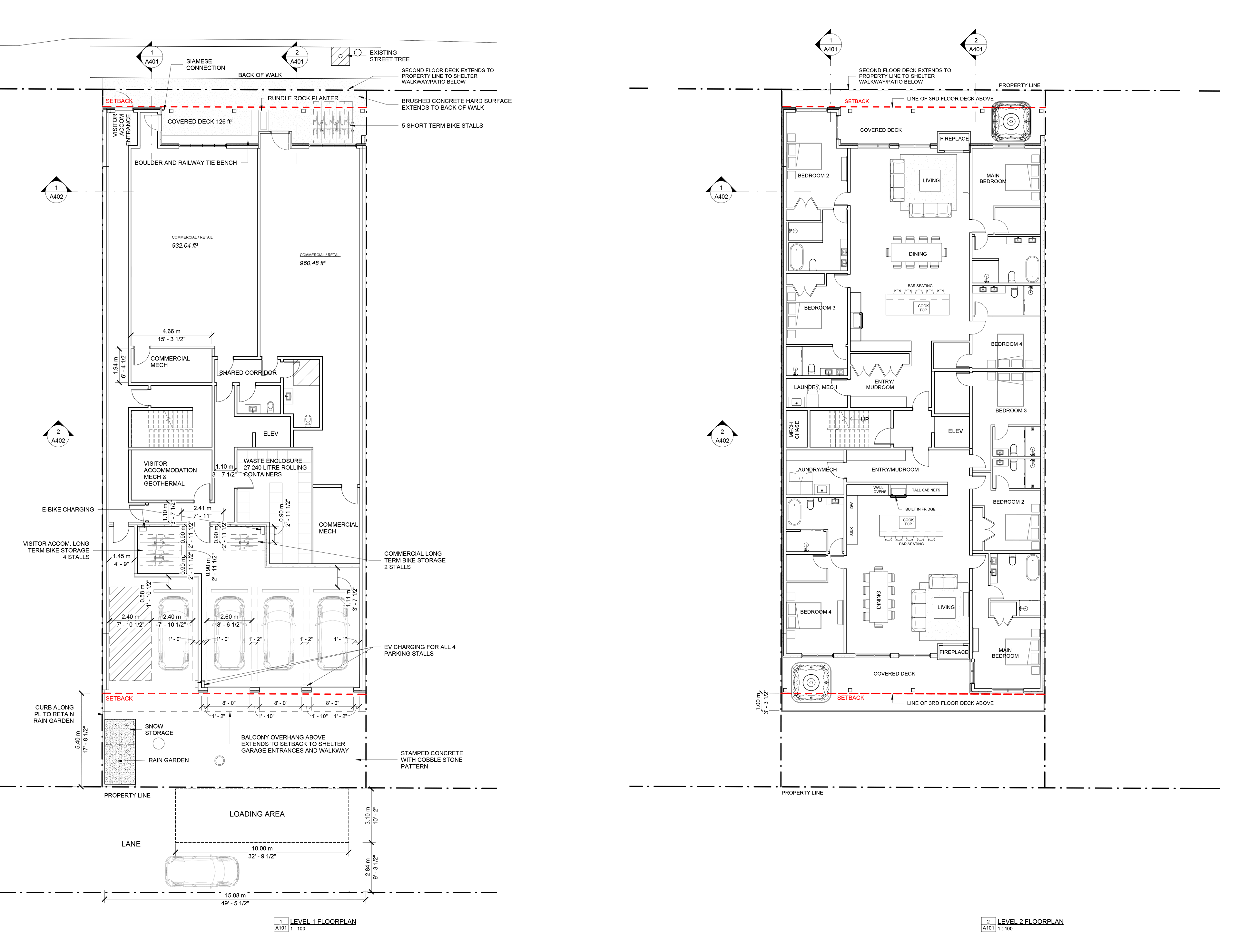 This contemporary, mixed-use development on Canmore’s Main Street combines two street-oriented retail units at grade with four visitor accommodation units above. Stepped massing, recessed upper levels, and a rooftop terrace with mountain views respond to the surrounding context while maintaining a pedestrian-scaled streetscape and contemporary alpine character.